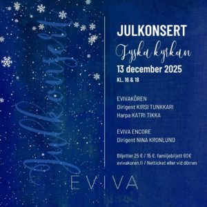 Mer information om Eviva Encore får man genom att kontakta Evivakörens ordförande Victoria Lang på ordforande@evivakoren.fi.Kontakt